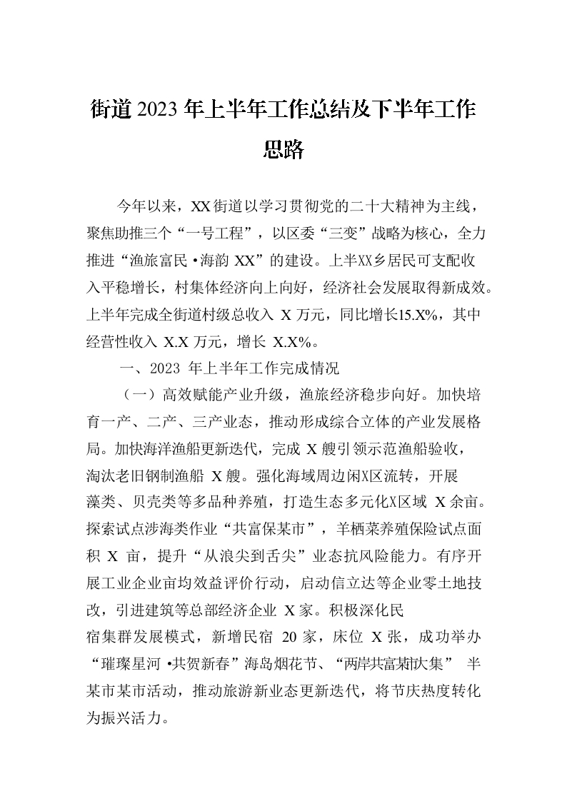 / 街道2023年上半年工作总结及下半年工作思路(20230703)