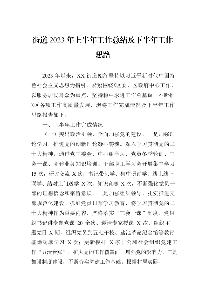 街道2023年上半年工作总结及下半年工作思路(20230904)