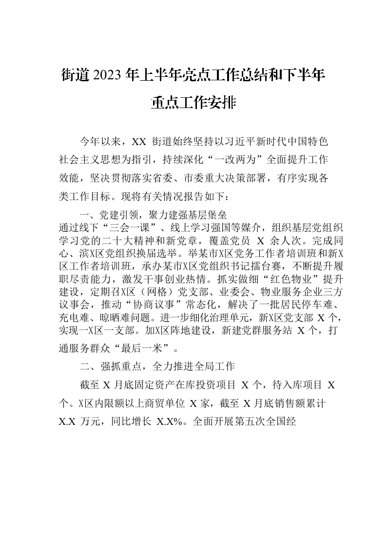 / 街道2023年上半年亮点工作总结和下半年重点工作安排(20230706)