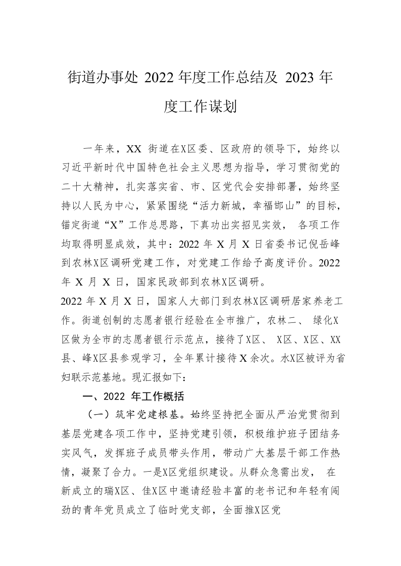 / 街道办事处2022年度工作总结及2023年度工作谋划