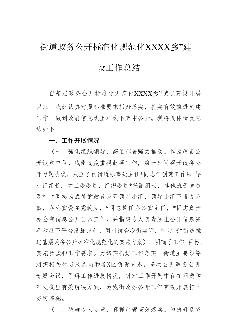 / 街道政务公开标准化规范化“十县百乡”建设工作总结