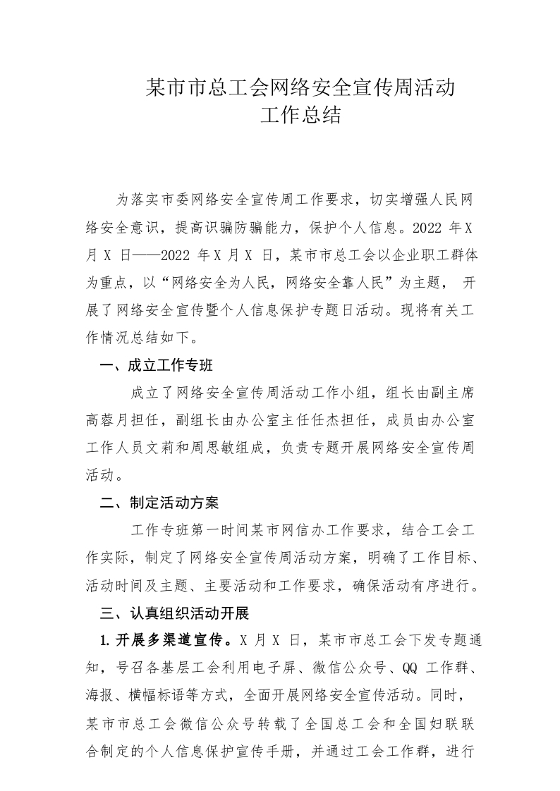 / 津市市总工会网络安全宣传周活动工作总结
