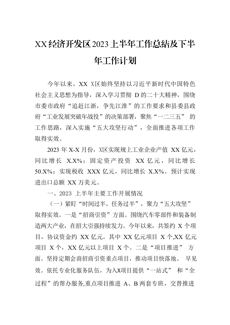 / 经济开发区2023年上半年工作总结及2023下半年工作计