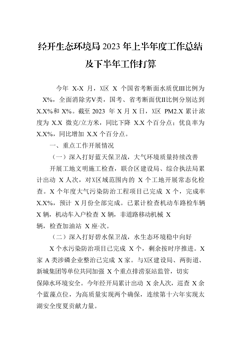 / 经开生态环境局2023年上半年度工作总结及下半年工作打算