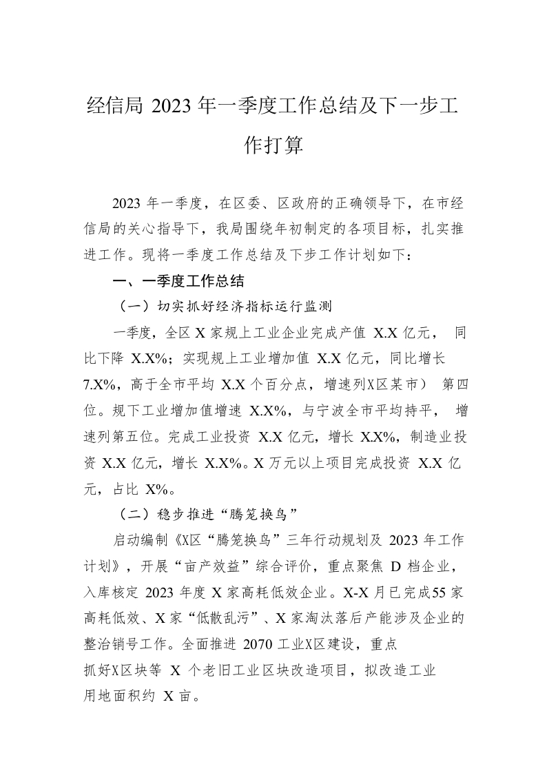 经信局2023年一季度工作总结及下一步工作打算(20230530)