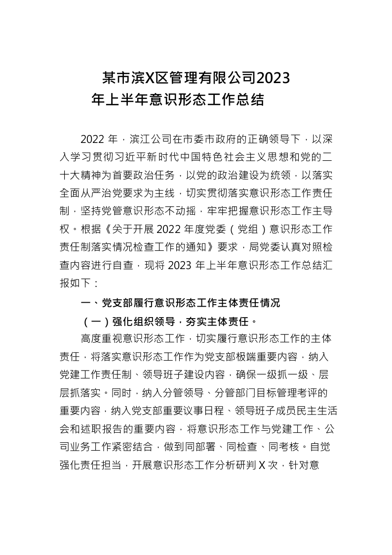 / 景区管理有限公司2023年上半年意识形态工作总结