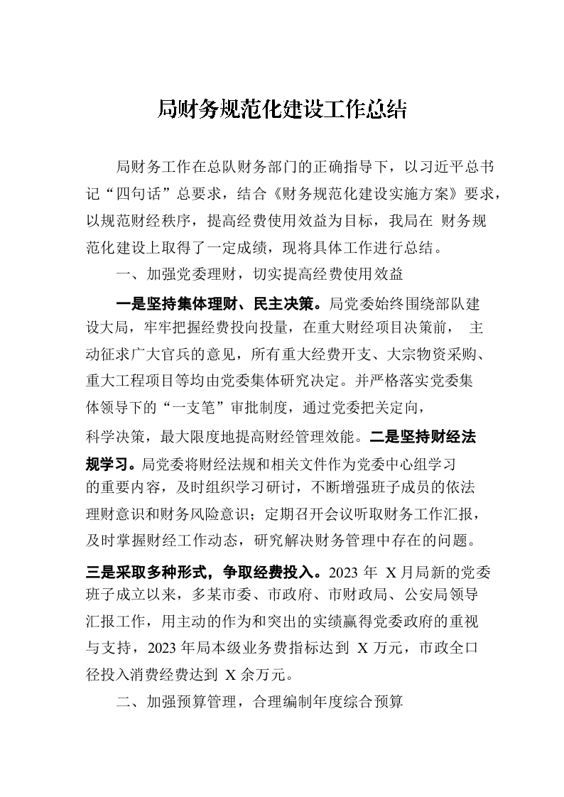 / 局财务规范化建设工作总结