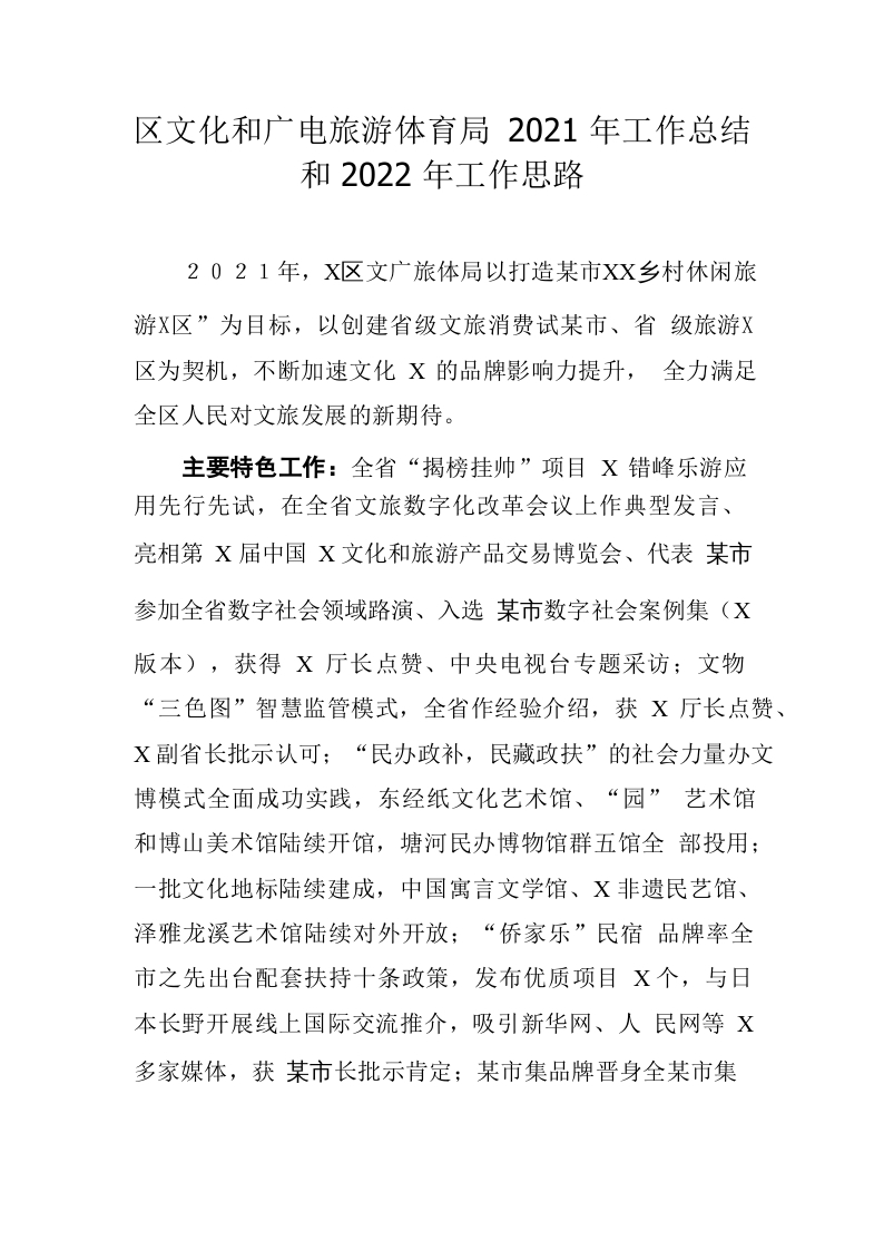 / 局机关:区文化和广电旅游体育局2021年工作总结和2022年工作思路