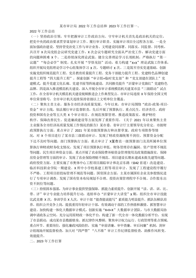 / 临沂市审计局2022年工作总结和2023年工作打算