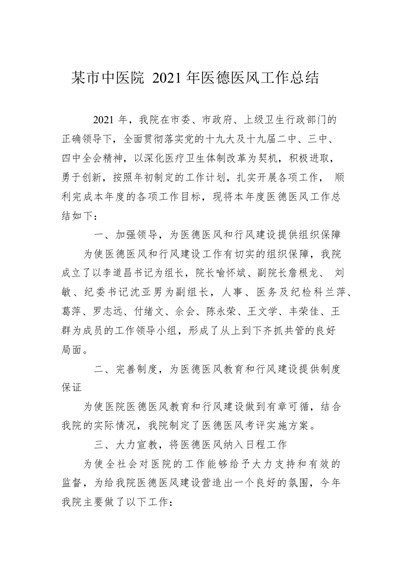 / 六安市中医院2021年医德医风工作总结