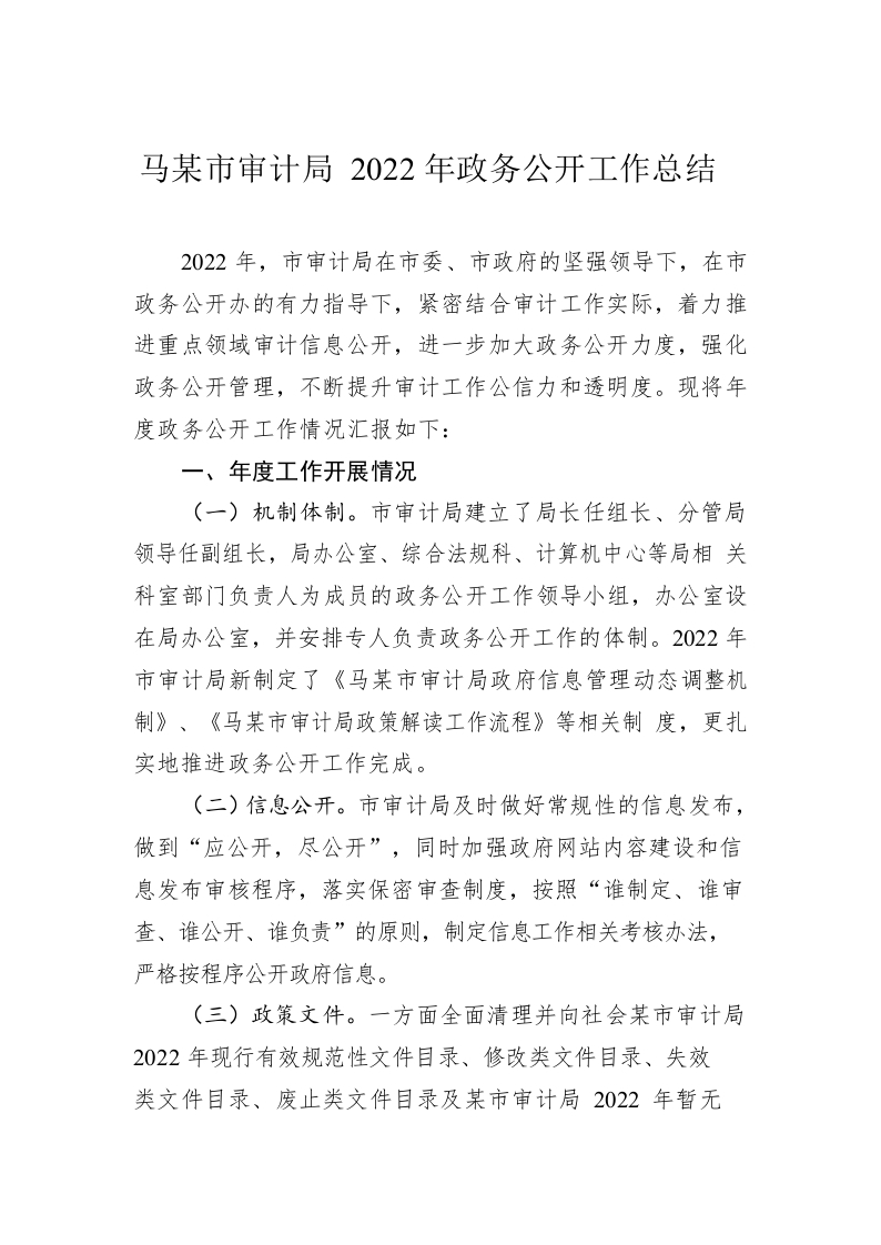 马鞍山市审计局2022年政务公开工作总结(20221219)