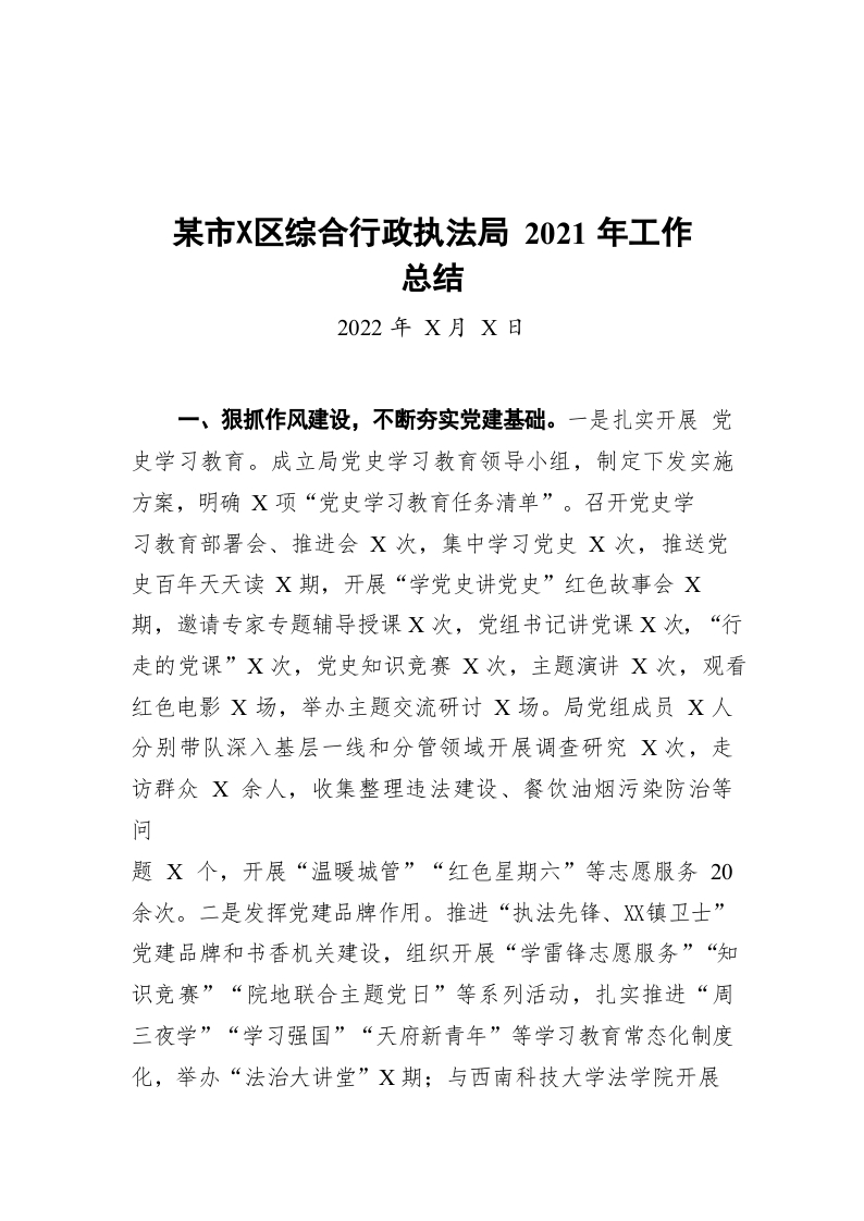 / 绵阳市游仙区综合行政执法局2021年工作总结(20220211)