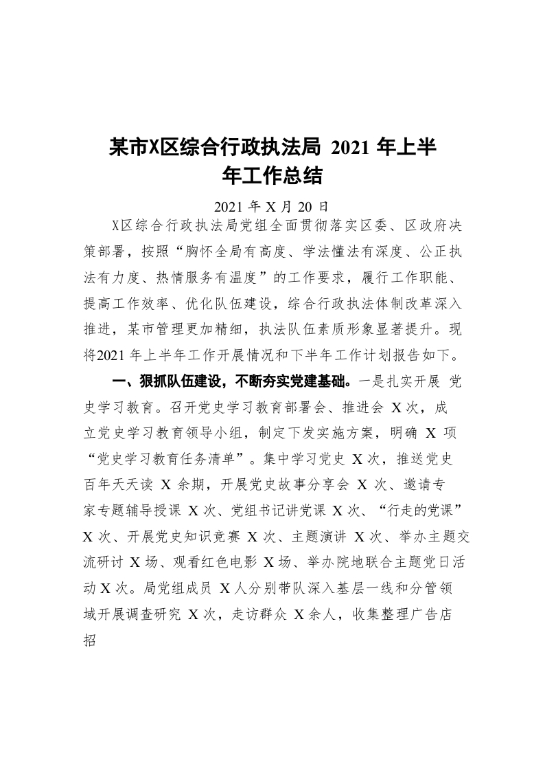 / 绵阳市游仙区综合行政执法局2021年上半年工作总结(20210720)