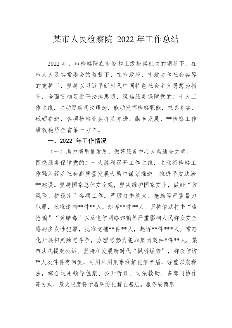 / 某市人民检察院2022年工作总结