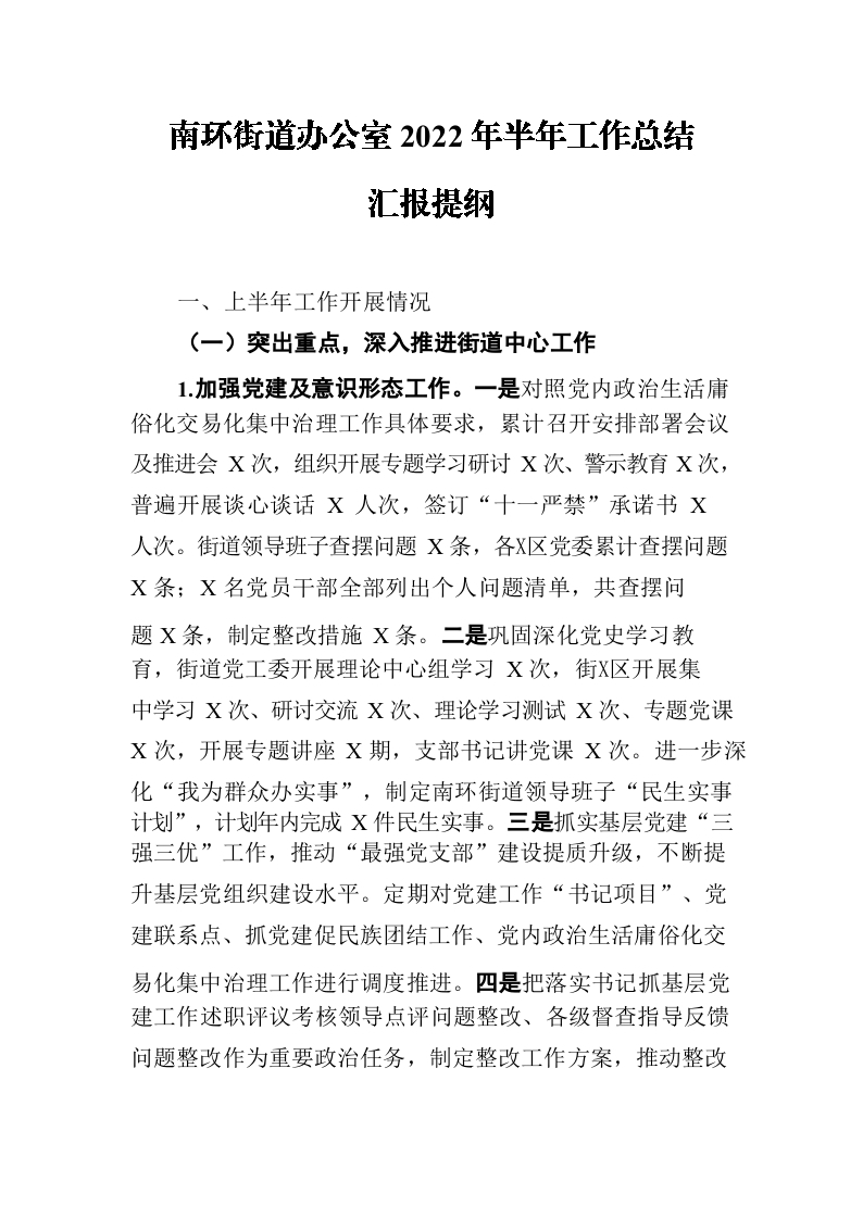 / 南环街道办公室2022年半年工作总结