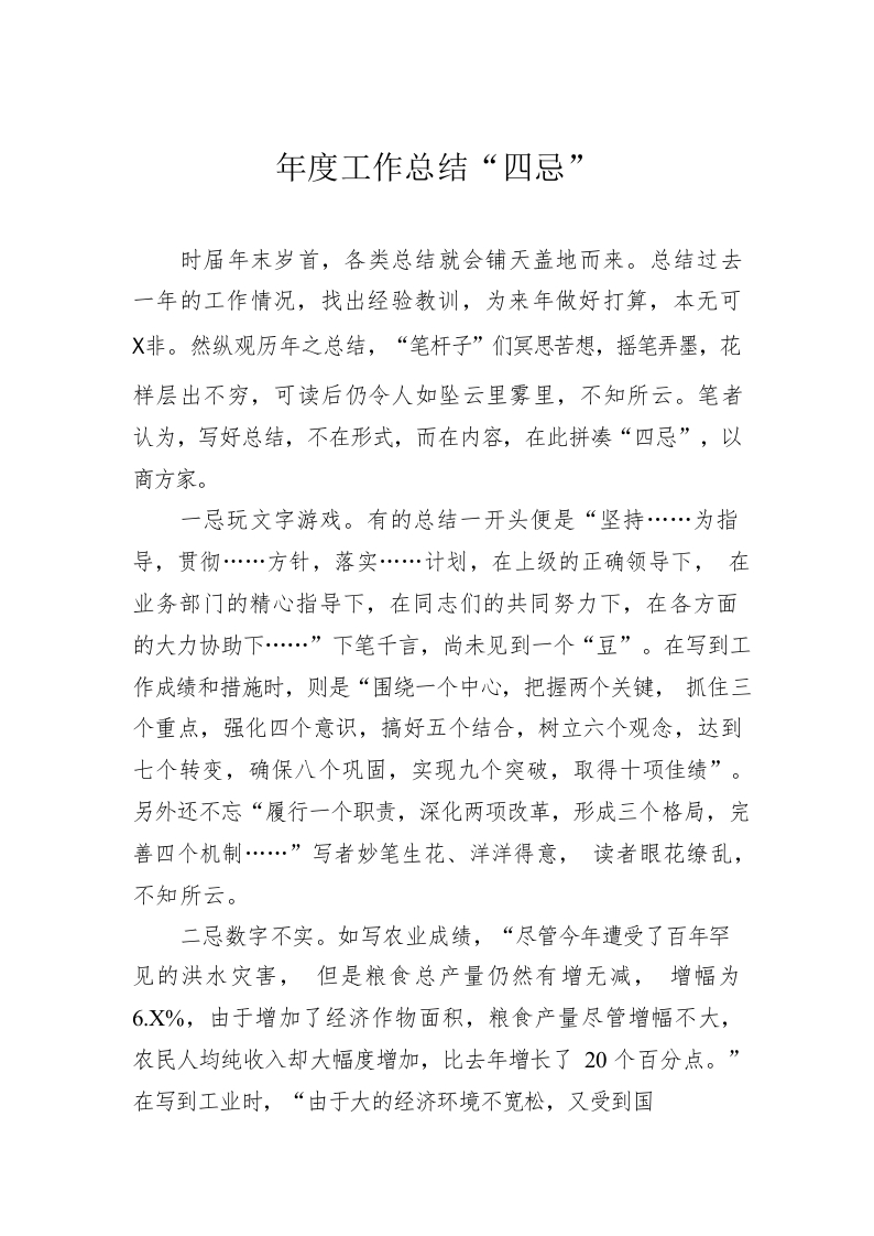 / 年度工作总结“四忌”