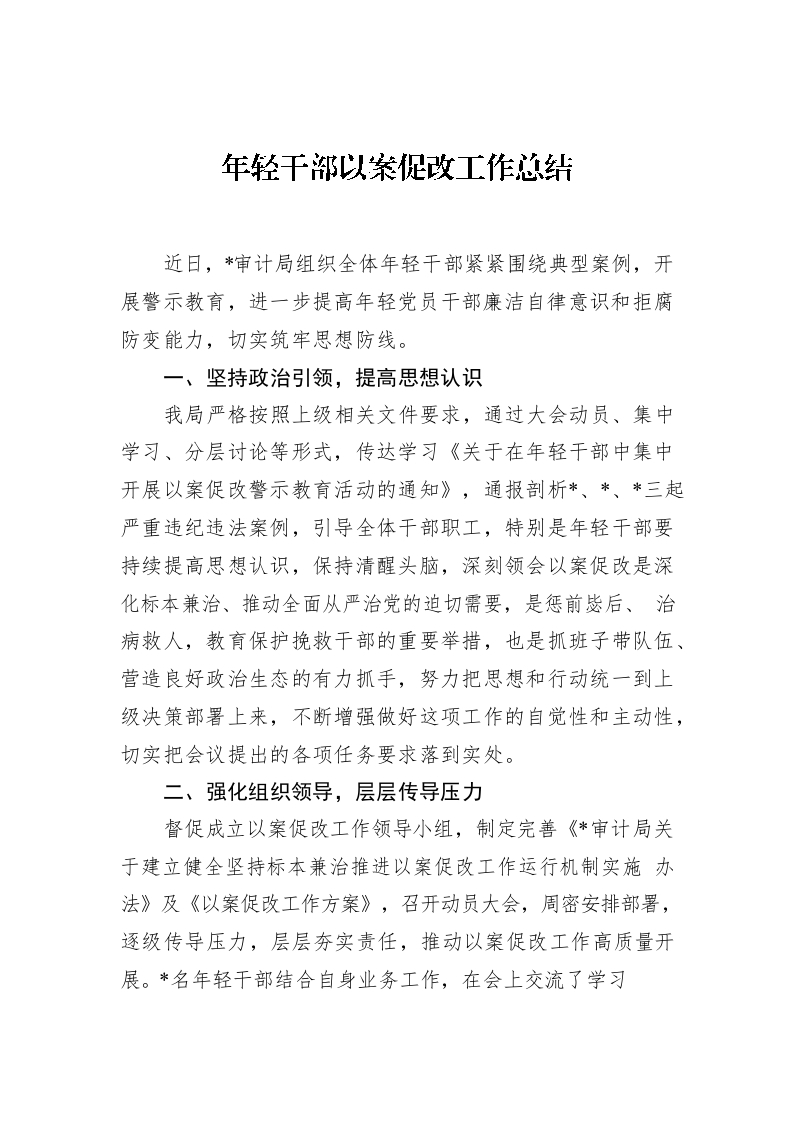 / 年轻干部以案促改工作总结(审计局)