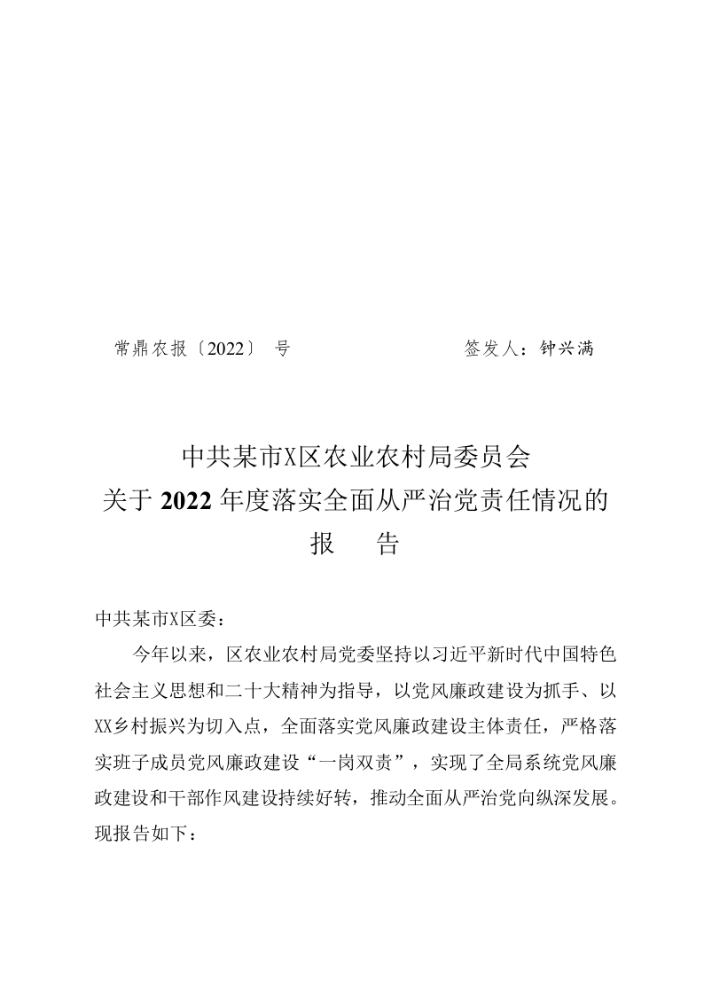 / 农业农村局2022年度从严治党工作总结