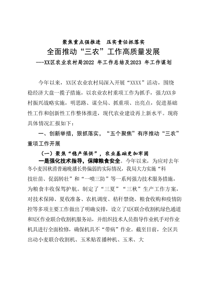 / 农业农村局2022年工作总结及2023年工作谋划