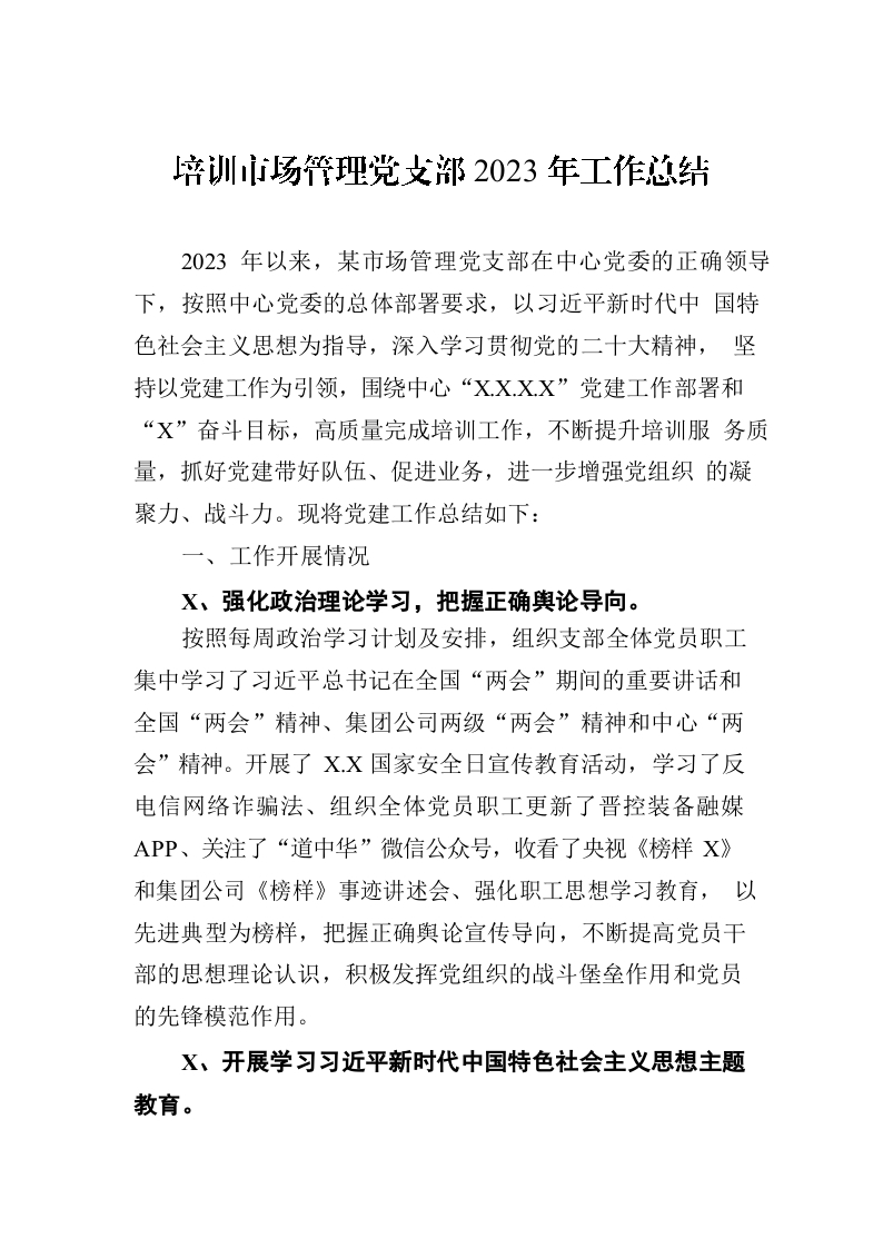 / 培训市场管理党支部2023年工作总结