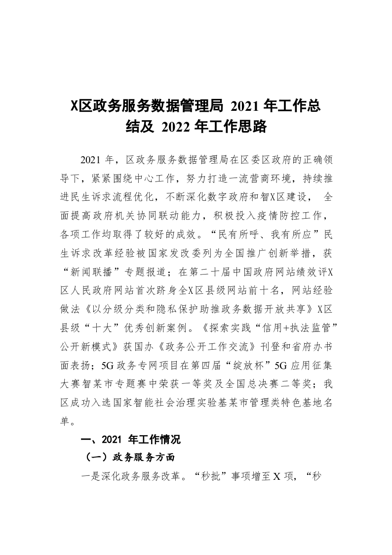 / 坪山区政务服务数据管理局2021年工作总结及2022年工作思路