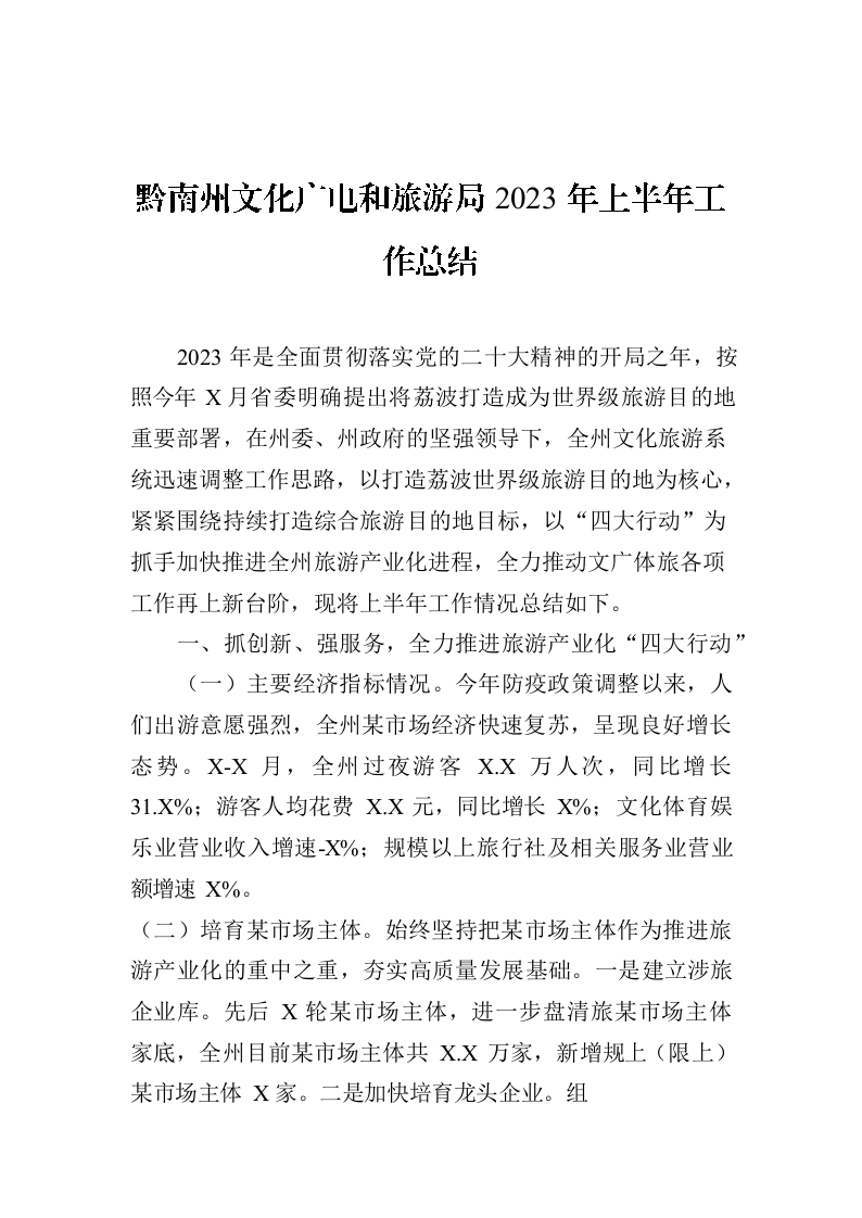 / 黔南州文化广电和旅游局2023年上半年工作总结