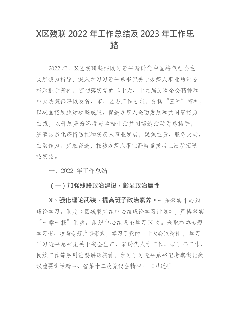 / 硚口区残联2022年工作总结及2023年工作思路