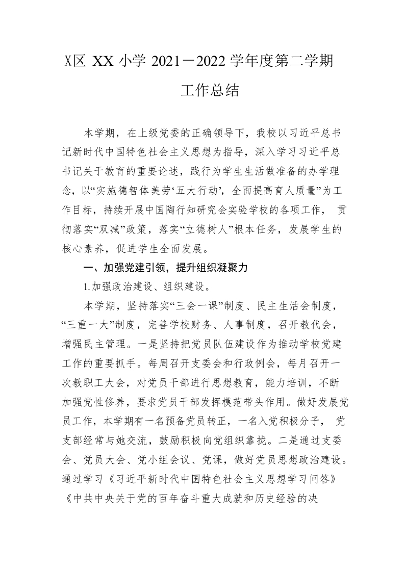 / 区XX小学2021-2022学年度第二学期工作总结