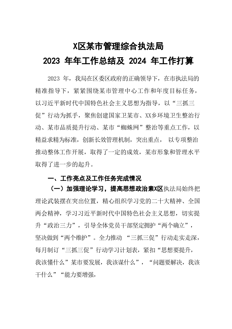 区城市管理综合执法局2023年年工作总结及2024年工作打算