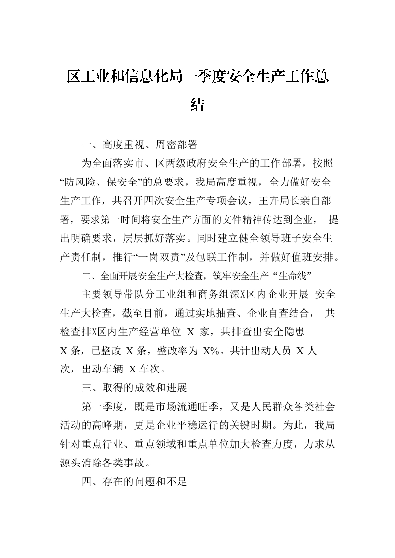 / 区工业和信息化局一季度安全生产工作总结(20230329)