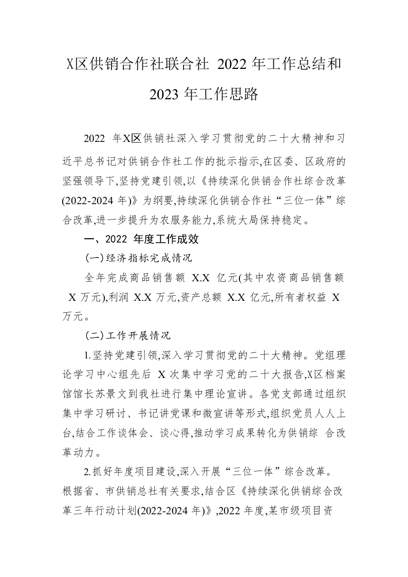 / 区供销合作社联合社2022年工作总结和2023年工作思路
