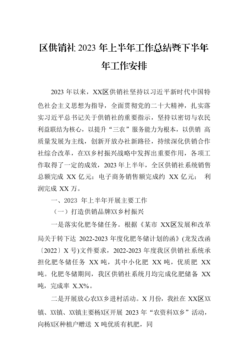 / 区供销社2023年上半年工作总结暨下半年年工作安排