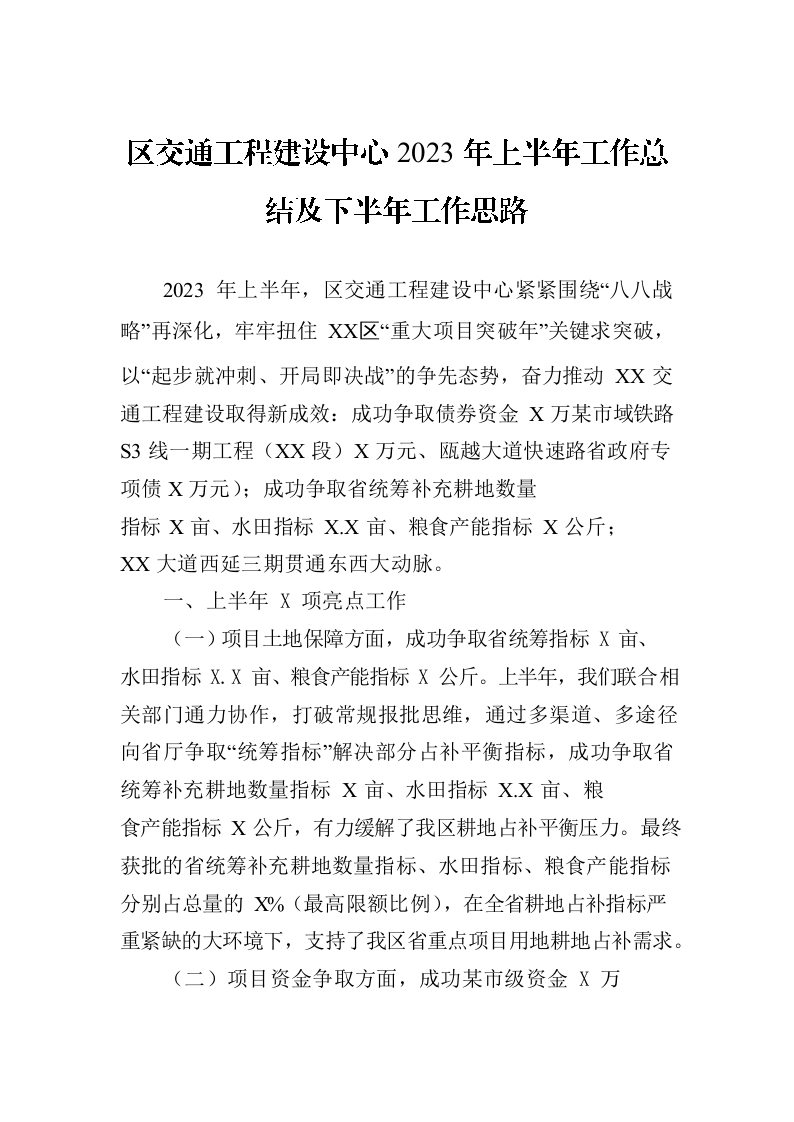 / 区交通工程建设中心2023年上半年工作总结及下半年工作思路(20230629)