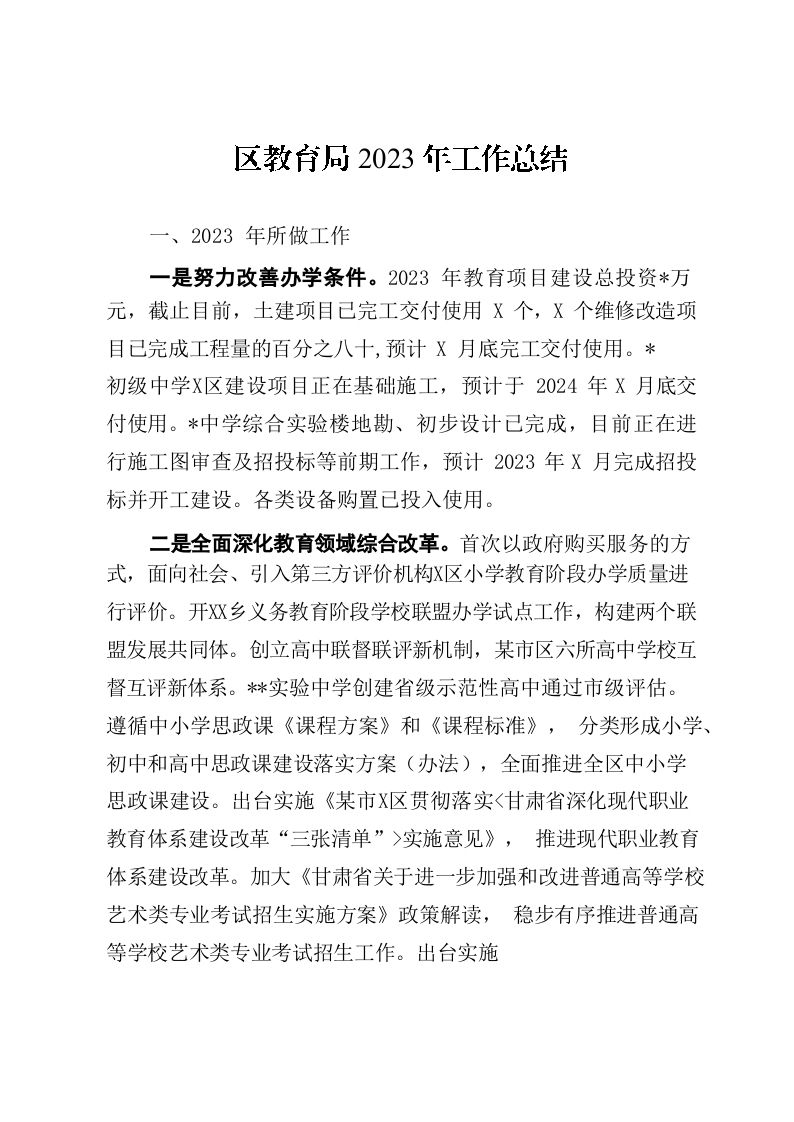 区教育局2023年工作总结