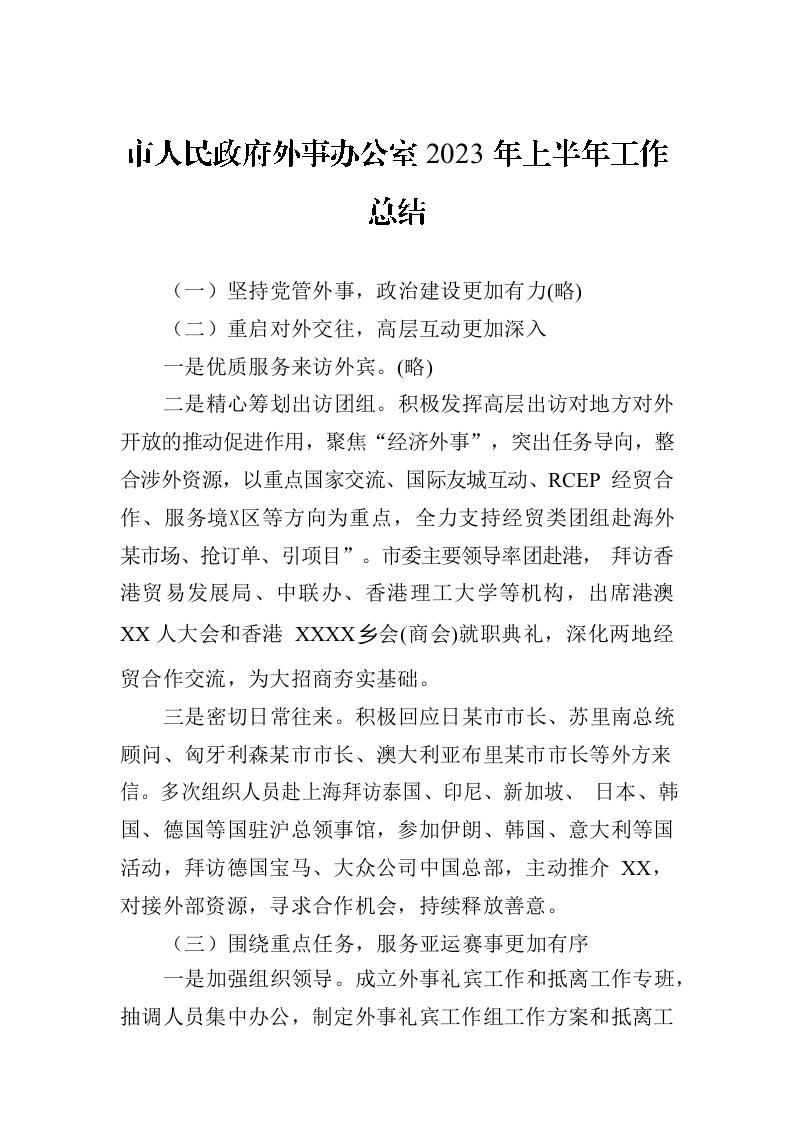 / 市人民政府外事办公室2023年上半年工作总结(20230710)