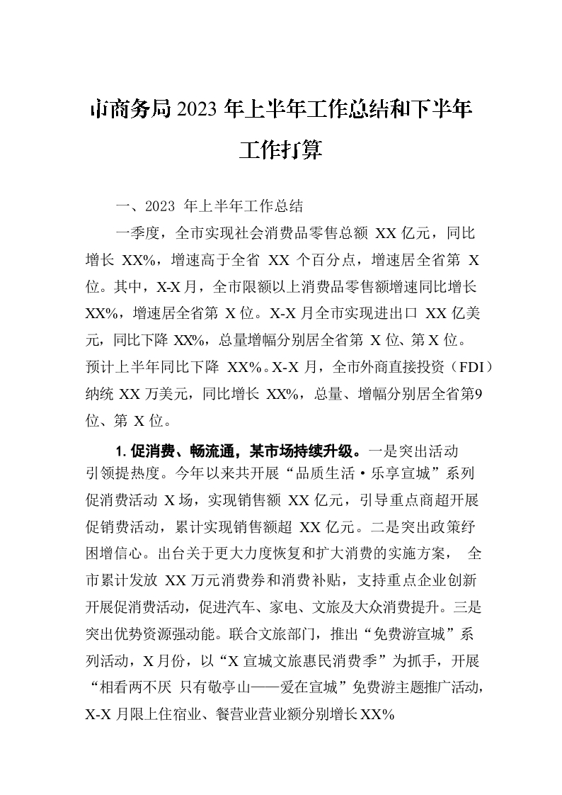 / 市商务局2023年上半年工作总结和下半年工作打算