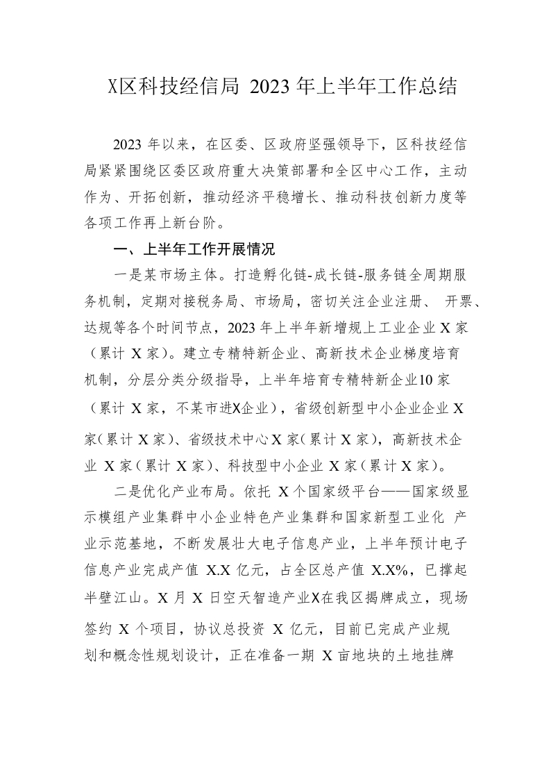 / 区科技经信局2023年上半年工作总结(20230625)
