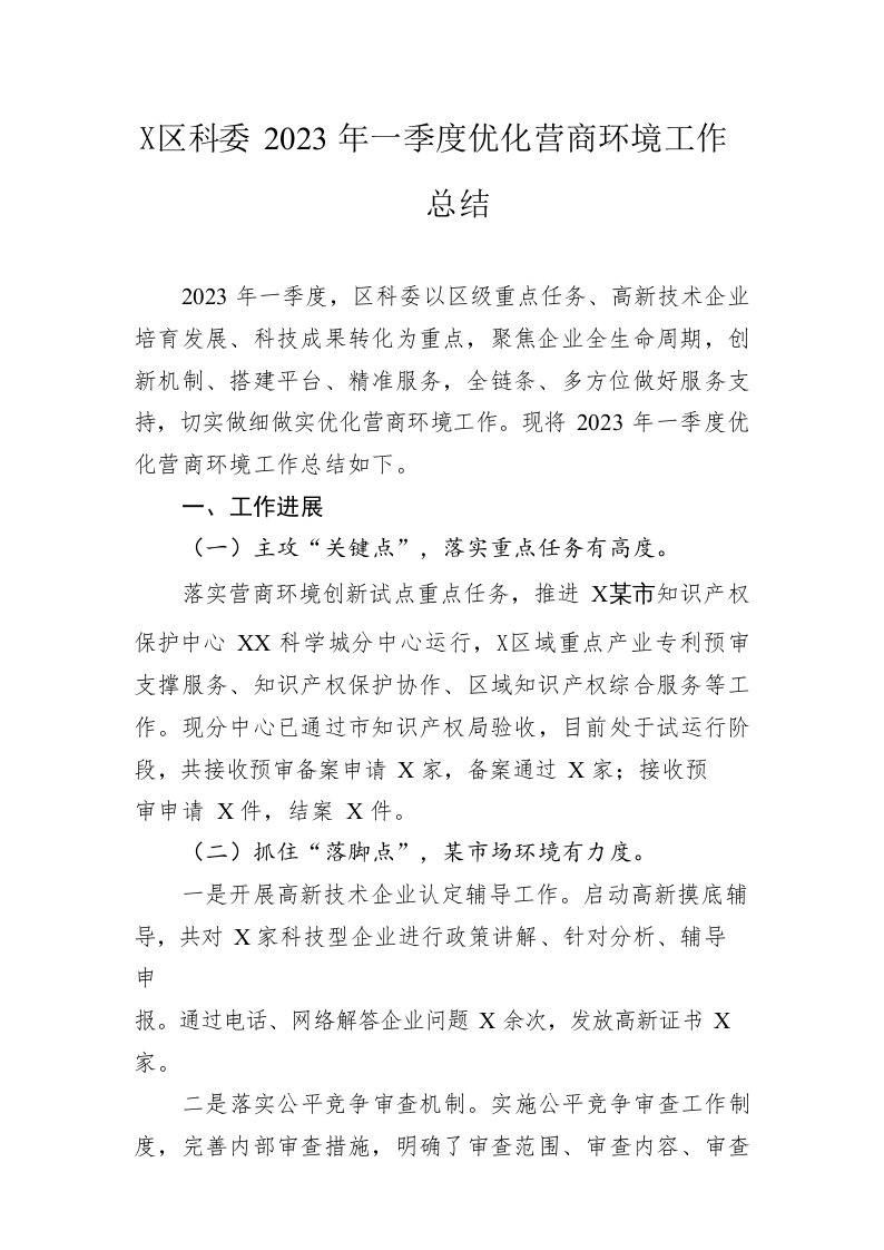 / 区科委2023年一季度优化营商环境工作总结(20230410)