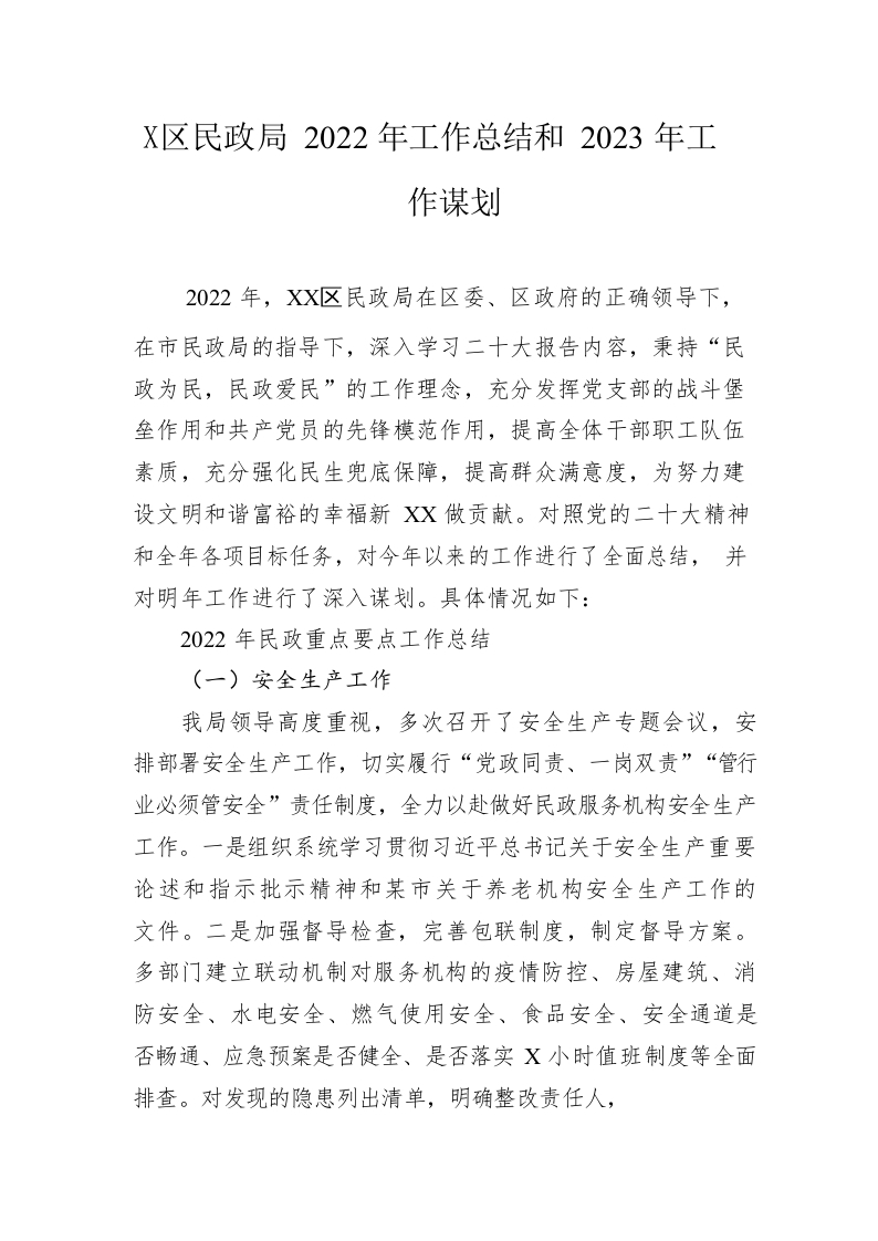 / 区民政局 2022年工作总结和2023年工作谋划