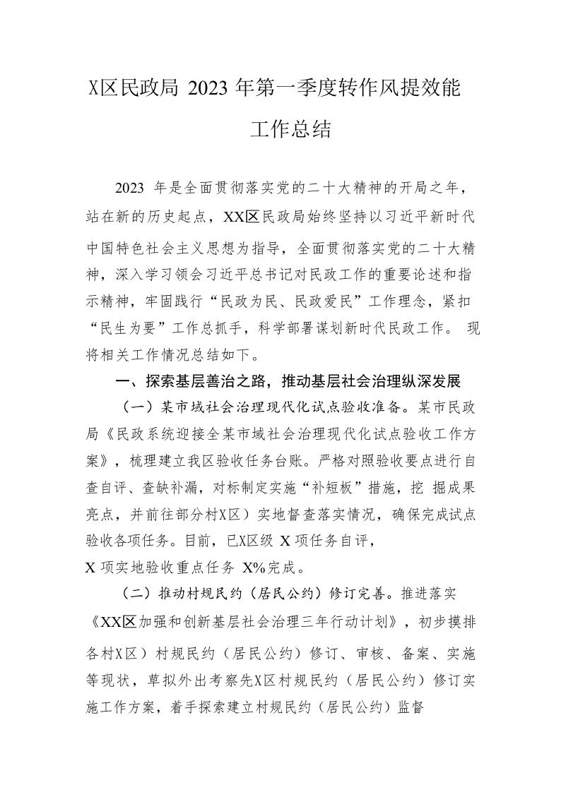 / 区民政局2023年第一季度转作风提效能工作总结