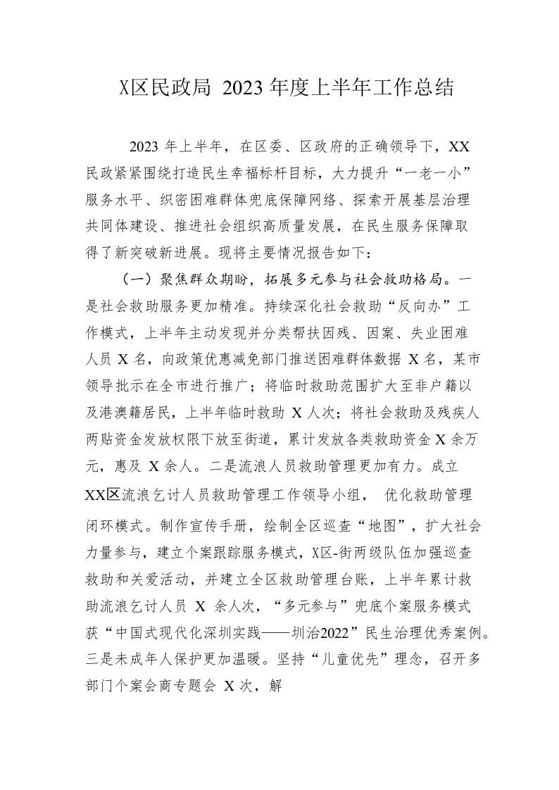 / 区民政局2023年度上半年工作总结(20230612)