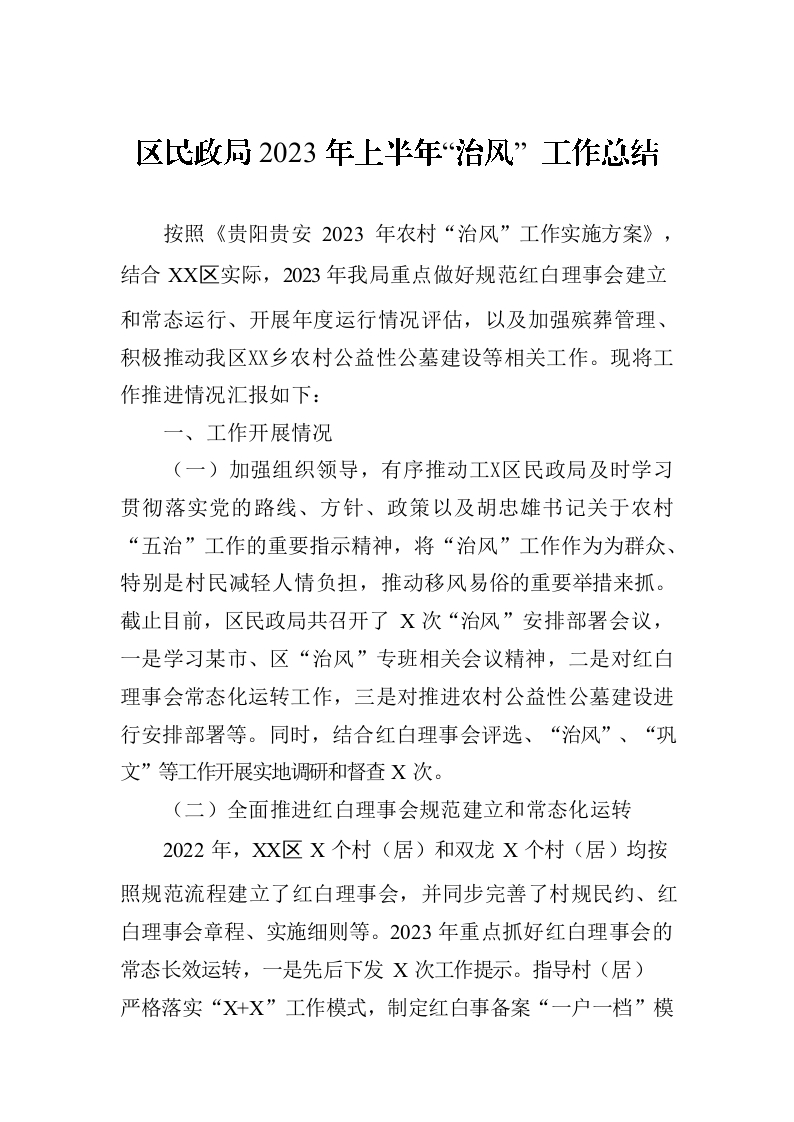 / 区民政局2023年上半年“治风” 工作总结(20230629)