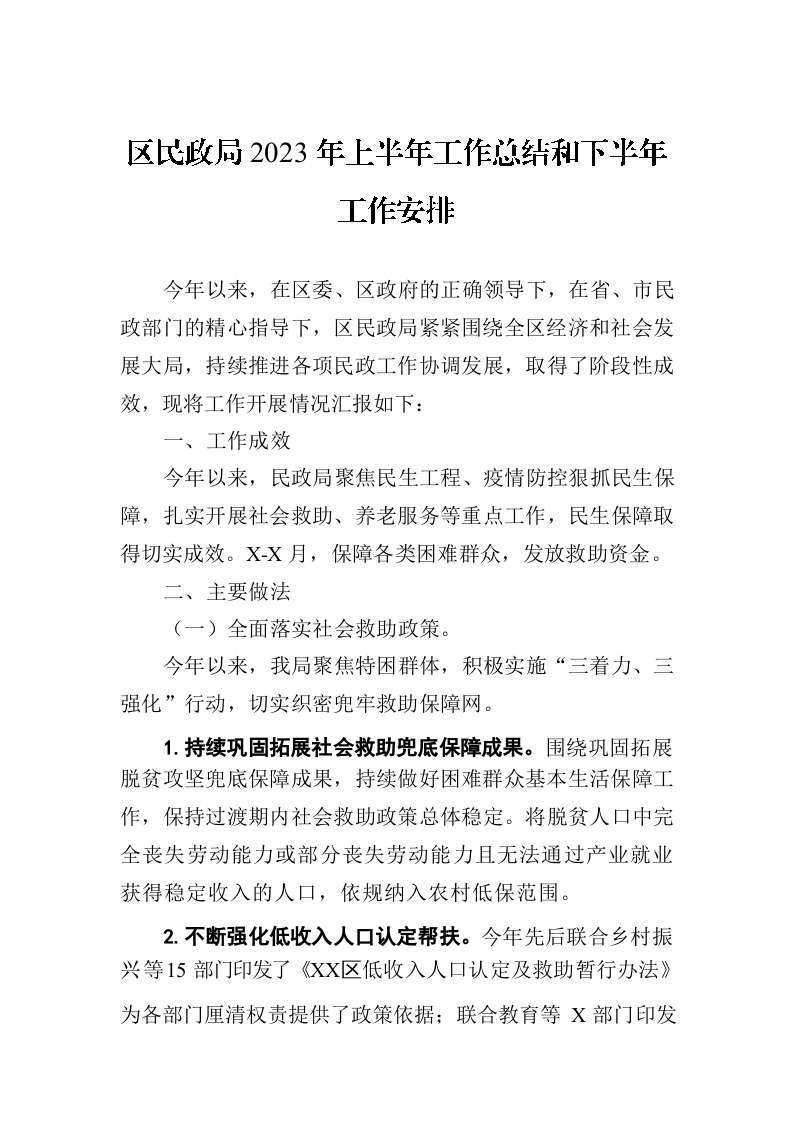 / 区民政局2023年上半年工作总结和下半年工作安排(20230629)