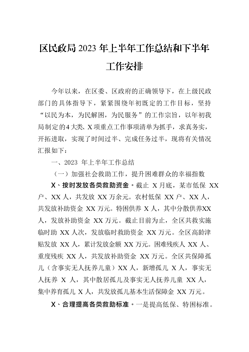 / 区民政局2023年上半年工作总结和下半年工作安排