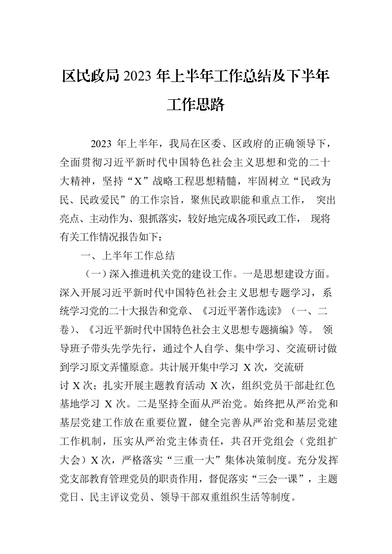 / 区民政局2023年上半年工作总结及下半年工作思路(20230710)