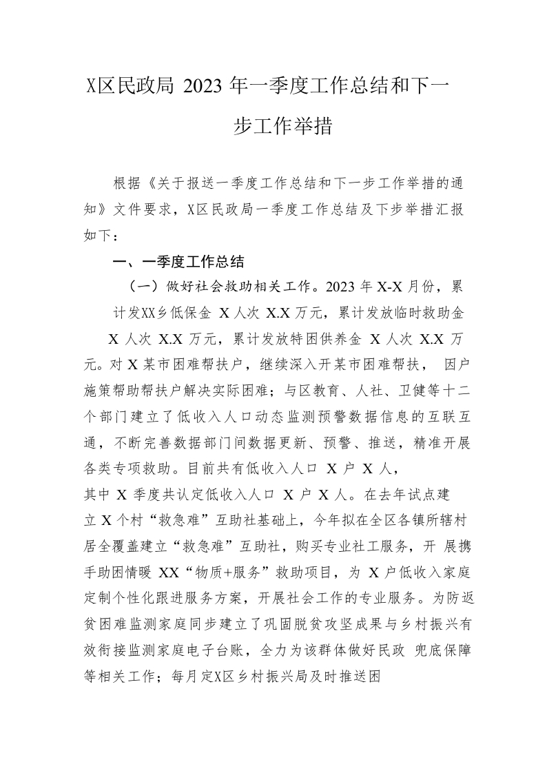 区民政局2023年一季度工作总结和下一步工作举措(20230504)