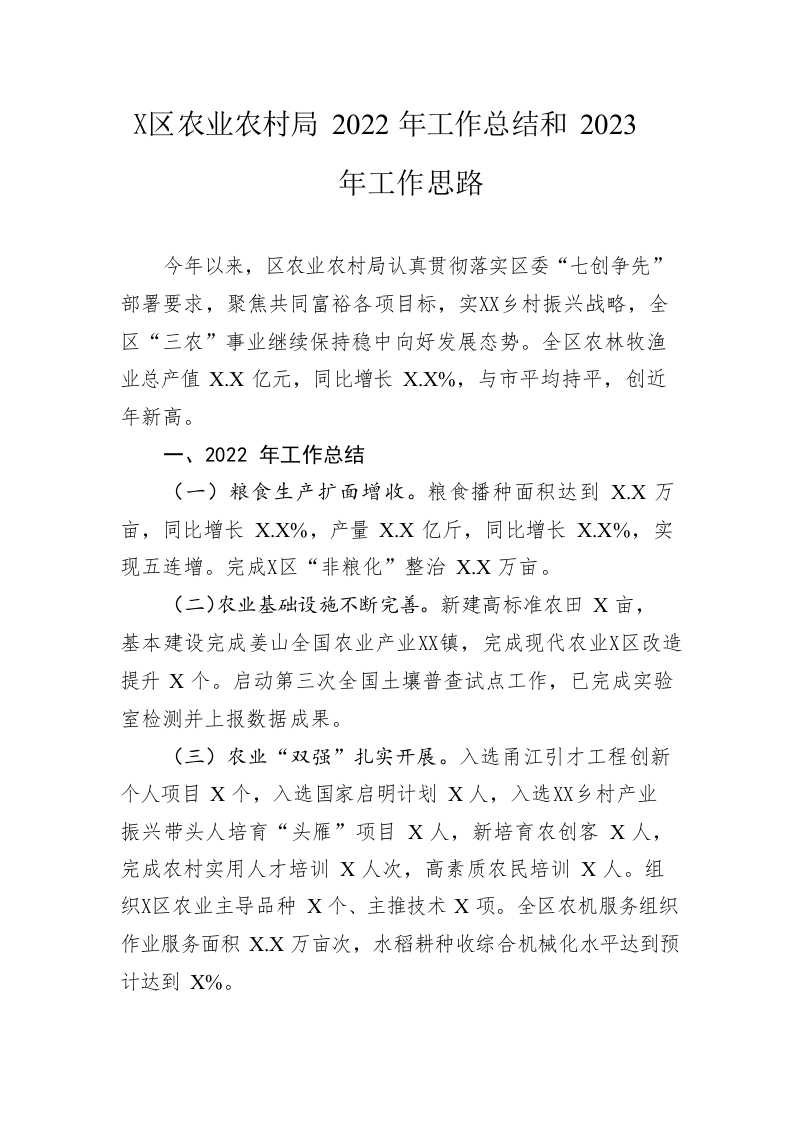 / 区农业农村局2022年工作总结和2023年工作思路