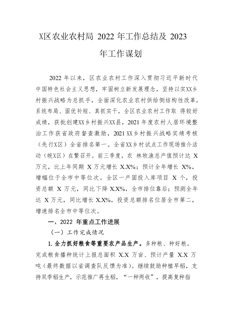 / 区农业农村局2022年工作总结及2023年工作谋划