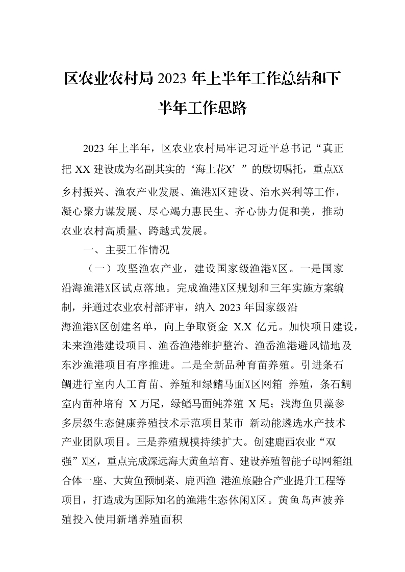 / 区农业农村局2023年上半年工作总结和下半年工作思路(20230710)