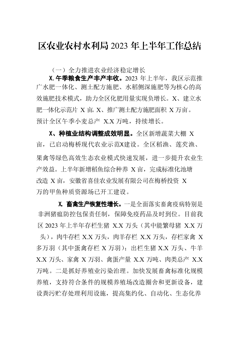 / 区农业农村水利局2023年上半年工作总结(20230620)